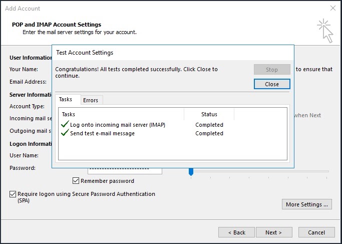 Setup is now complete and you’re ready to send and receive email. Contact support if you need assistance with this setup.