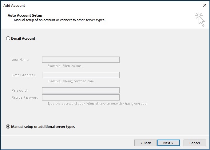 Click “Manual setup or additional server types” and hit “Next”