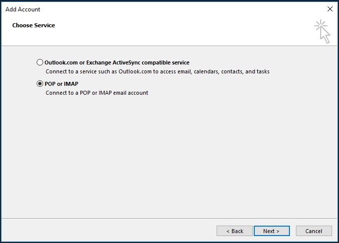 Check “POP or IMAP” and hit “Next”