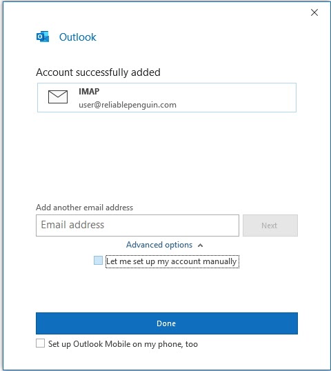 Setup is now complete and you’re ready to send and receive email. Contact support if you need assistance with this setup.